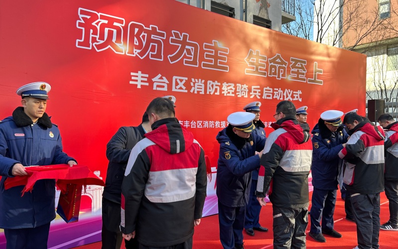 1月26日上午,北京市丰台区消防救援支队联手北京顺丰速运有限公司,召开“丰台消防轻骑兵”启动仪式,现场为20名快递员代表配发消防灭火装备和“消防轻骑兵”胸牌。